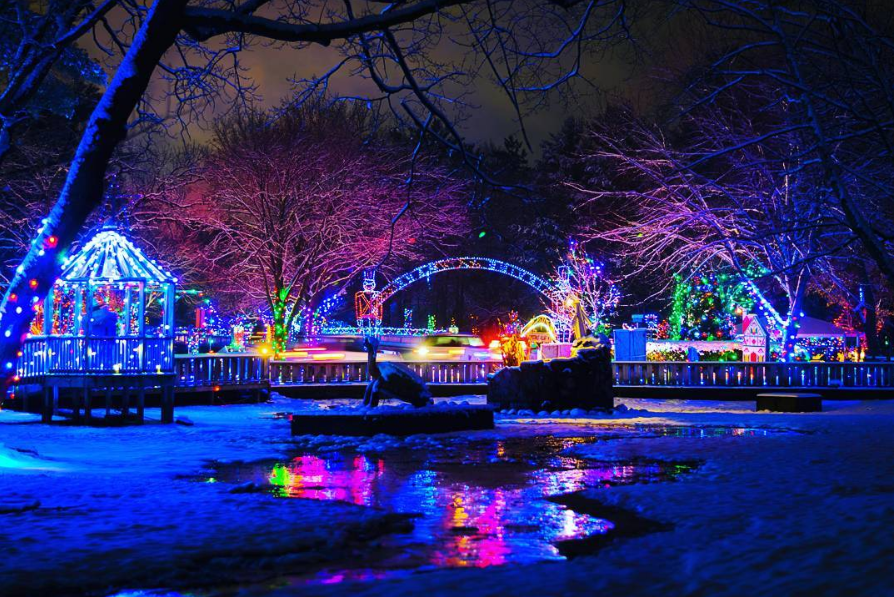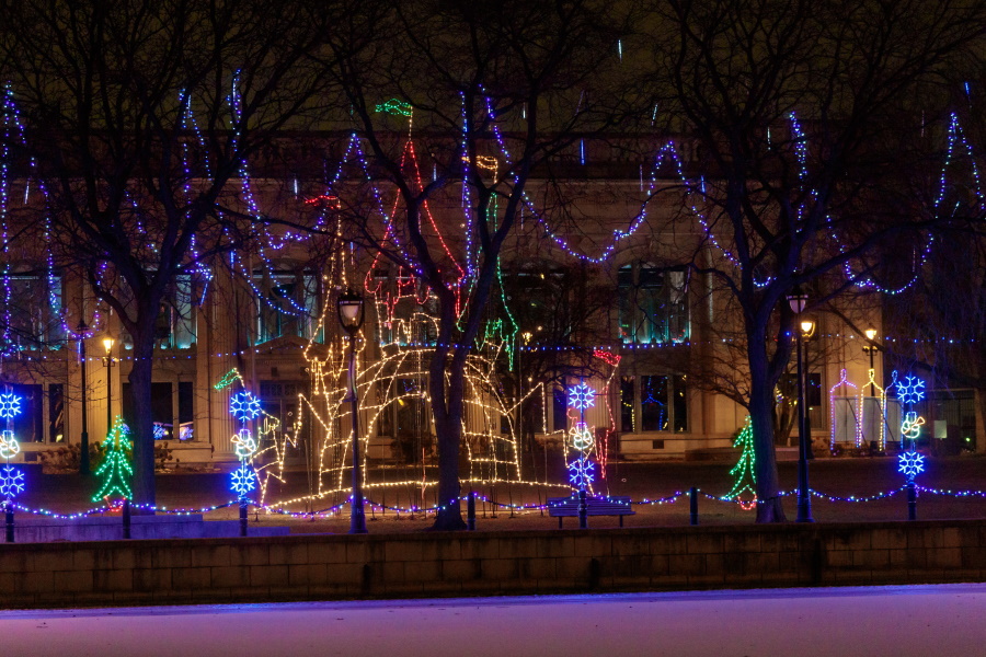 Pere Marquette Park, one of several decorated parks during downtown Milwaukee’s Holiday Lights Festival.