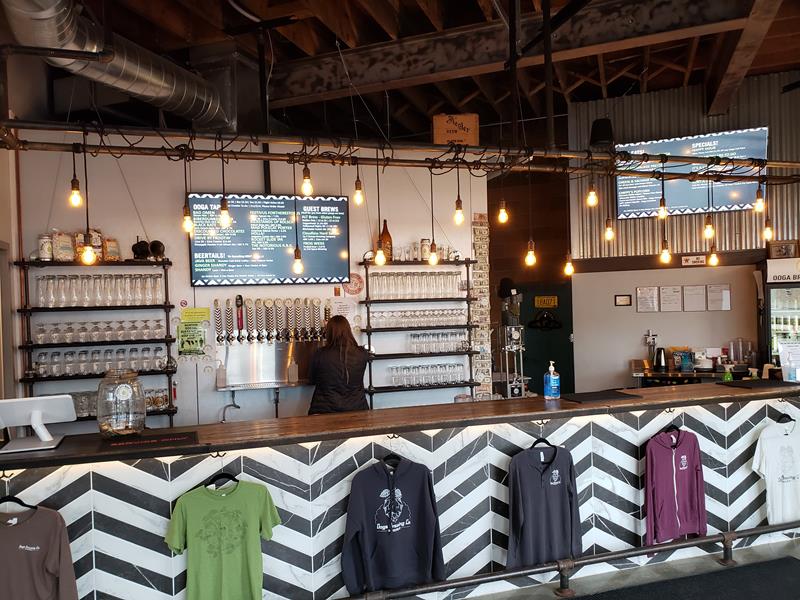 Ooga Brewing Company’s Tap Room. During our last visit, they didn’t have bar seating due to COVID safety protocols. But there were plenty of other seats!